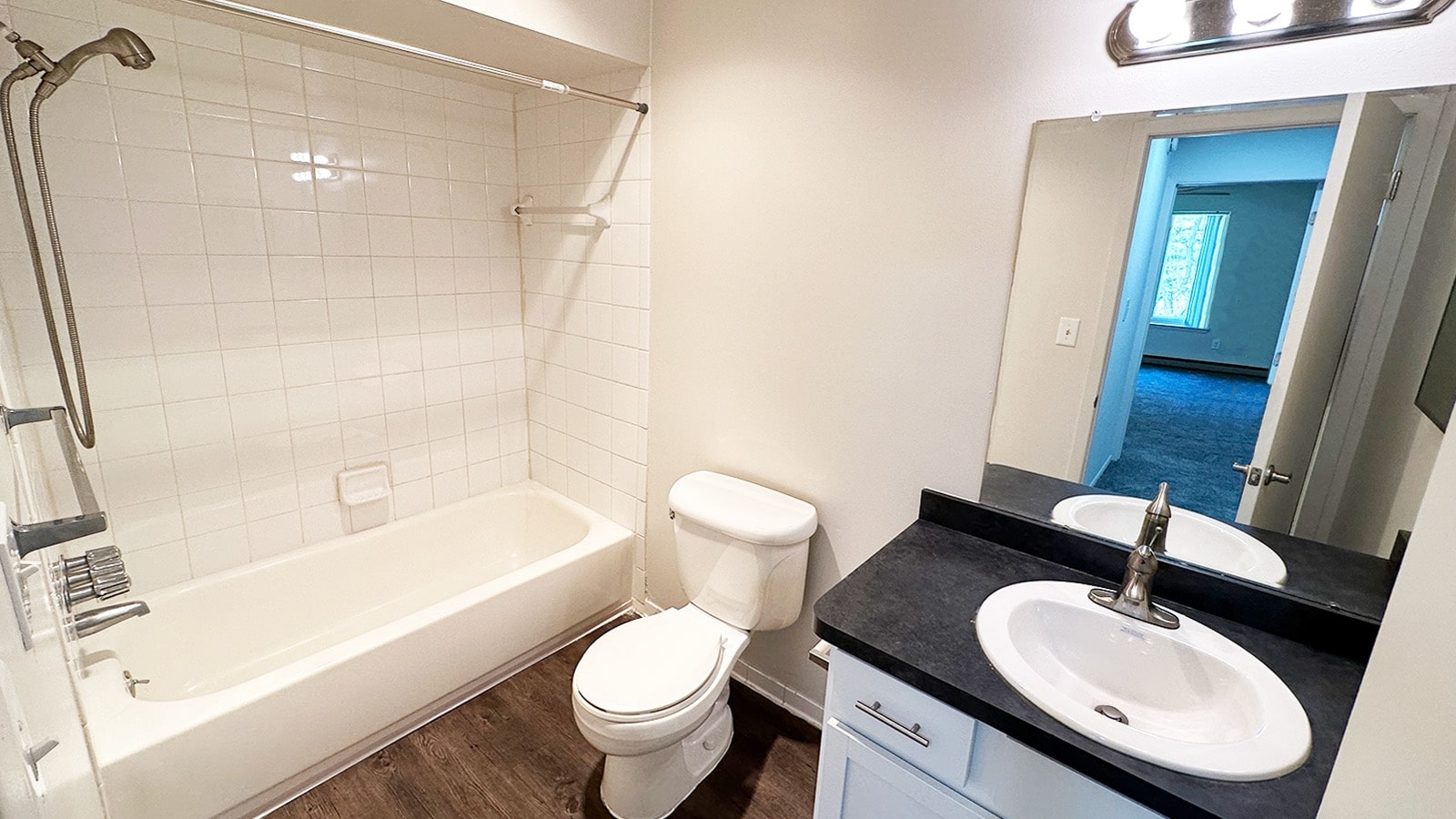 Yes. The one-bedroom layouts at Wellington Place have been recently renovated to include stylish upgrades. Kitchens and bathrooms feature shaker-style cabinetry with soapstone-look countertops, while kitchens and dining areas are finished with durable vinyl plank flooring. Updated lighting and fixtures give each home a clean, modern touch.